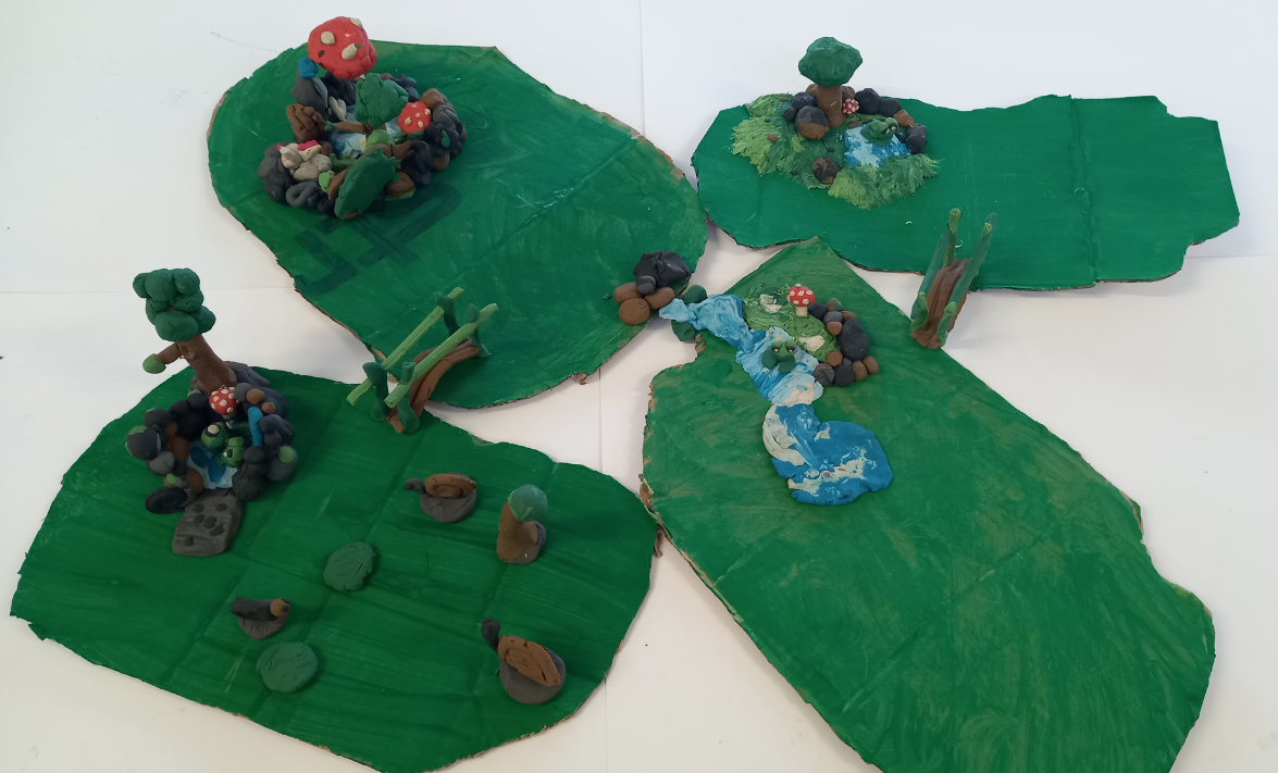 This project was initiated by staff in three primary schools in the area, towards an interactive walking tour with QR codes. It coincided with the Creative Communities residency and McIntosh’s own PhD research into the preacrity of some of the artefacts and sculptures. We looked at the terrain of Springburn Park, the statue to james Reid, the Doulton fountain, the Peace garden , the pond and other places and we made drawings and sculptures in response.